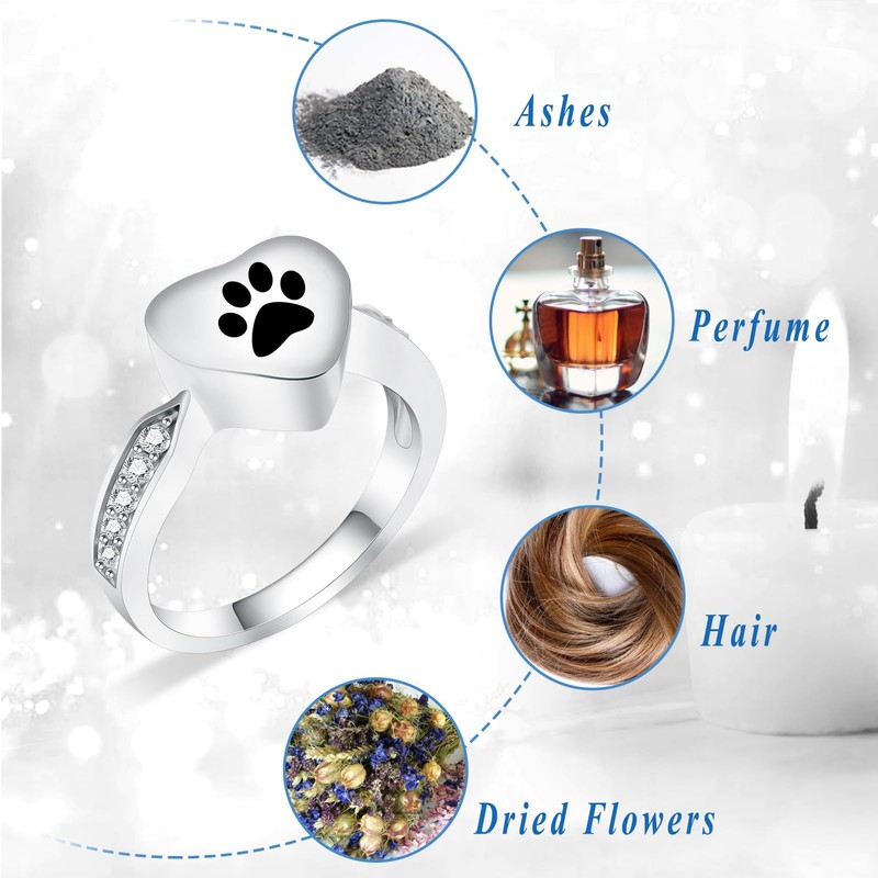 - Urn Rings for Ashes:This unique Memorial Urn Ring lets you carry some of the Cremated Ashes with you, the Ashes will be securely hidden inside, a subtle reminder of your dear pet’s loyalty and friendship pet ring holder