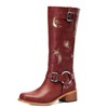AIWGLESOLE Riding Boots for Women Knee High with Buckle Stars Moon Heart Patterns Low Heel(red-gold,7)