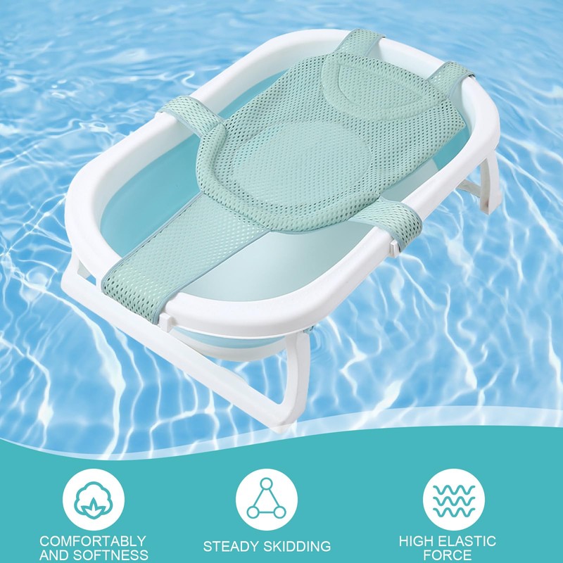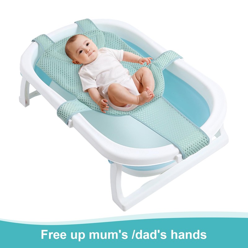 • STABLE AND SECURE BATHING PLATFORM: Our baby bath net is engineered with a secure design that prioritizes your baby's safety. The dual-layer adjustable straps create a stable and dependable platform, preventing any accidental slips or movements during bath time. This reassuring structure fosters a safe and secure environment, allowing you to relax and enjoy bath time with your baby