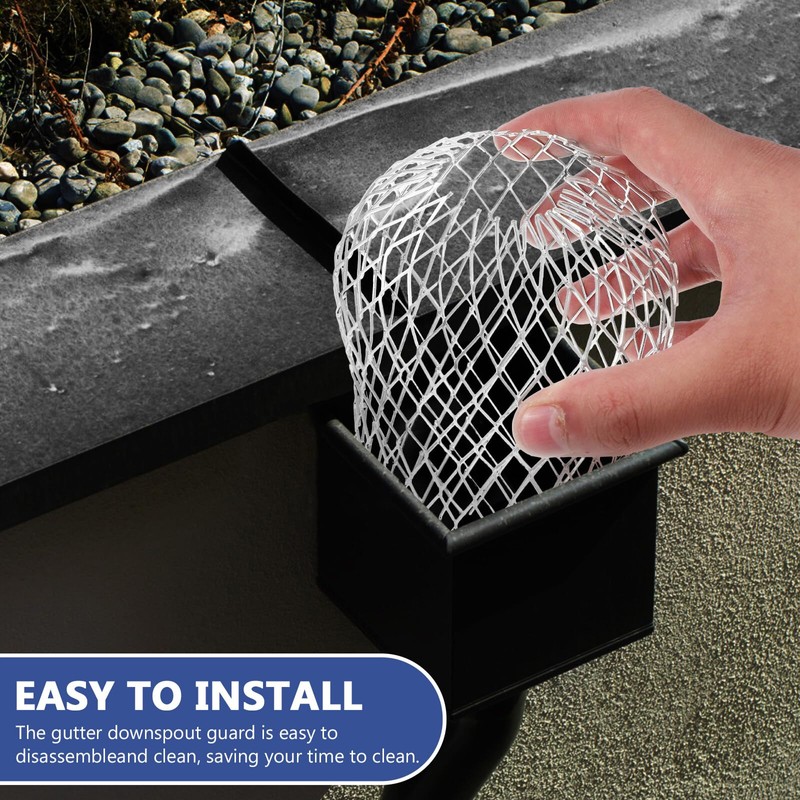• Easy to install: Say goodbye to complicated installation, no need to use any tools, just adjust the diameter of the metal gutter guard to be slightly smaller than the diameter of the leaf filter downpipe, then insert it and fix it. Fits tightly without clogging (Note: it is recommended to wear gloves throughout the installation process)