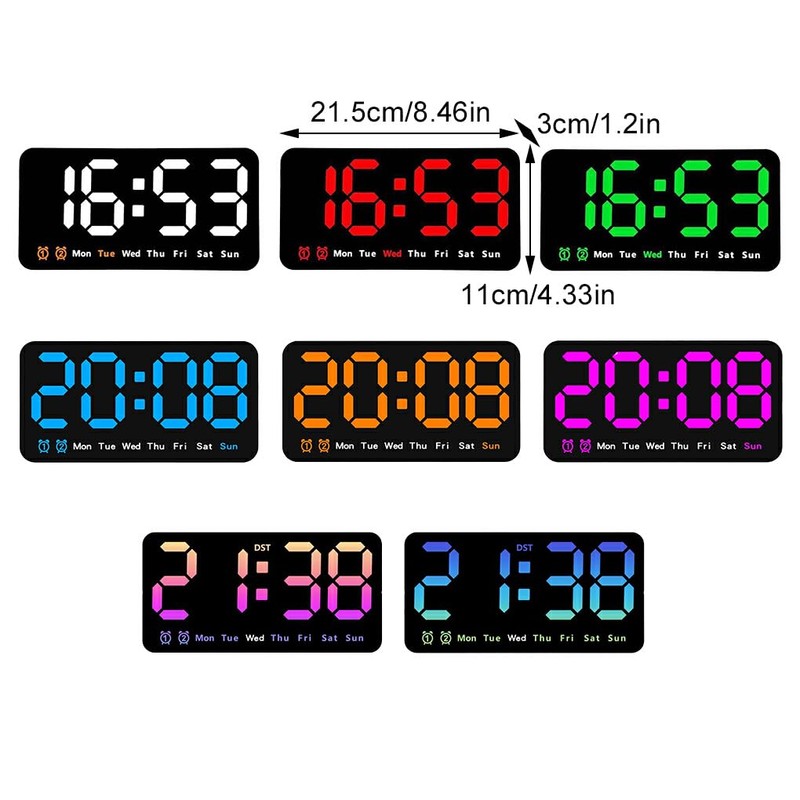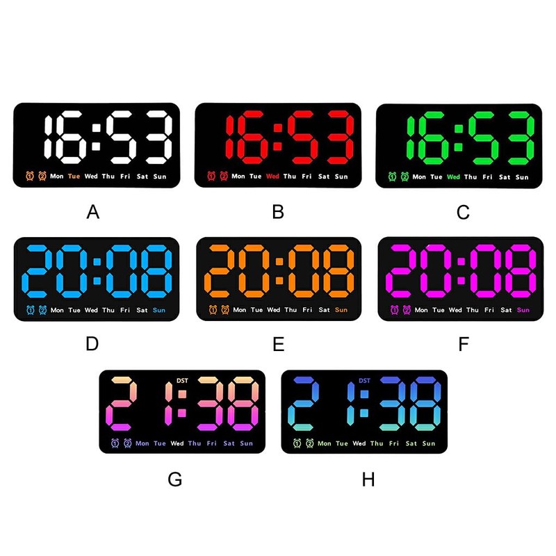 AIXXCUVQ Electronic Digital Wall Clock with Adjustable Brightness 9. Display Day of Week and Calendar ABS LED Digital Wall Clock, Style 2