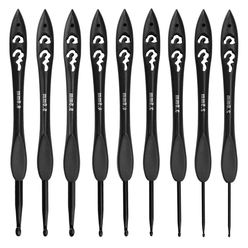 - Lightweight plastic crochet hooks that do not cause fatigue or pain in the hands during long crochets.