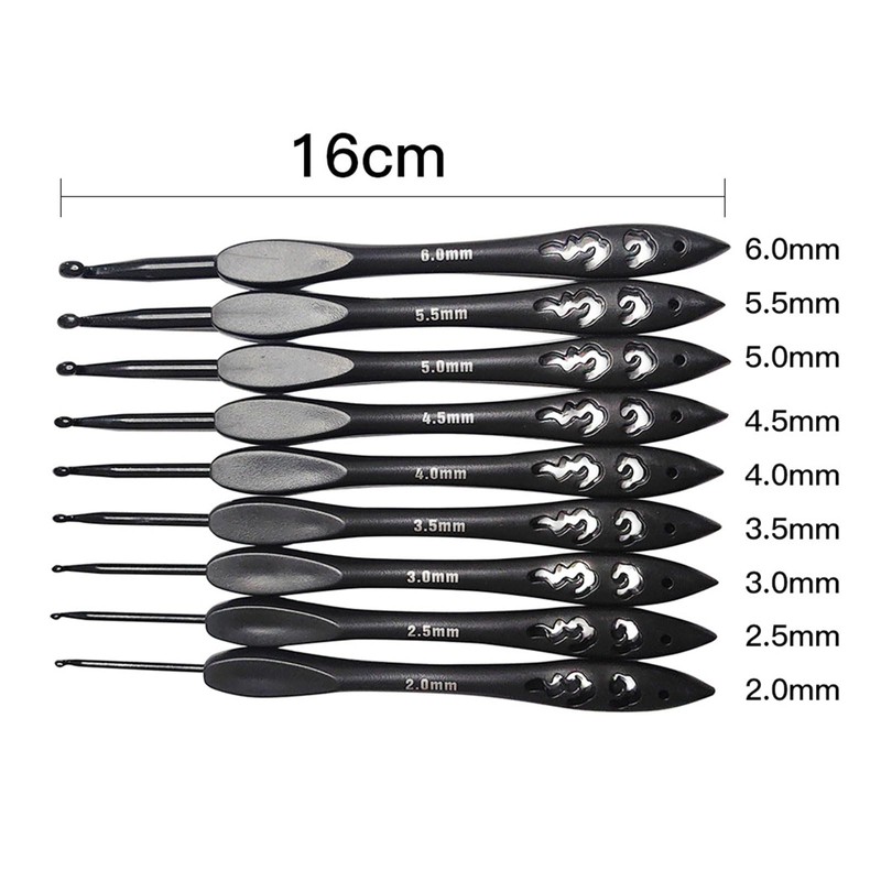 - The set includes: 9 crochet hooks (2.0 mm, 2.5 mm, 3.0 mm, 3.5 mm, 4.0 mm, 4.5 mm, 5.0 mm, 5.5 mm, 6.0 mm).