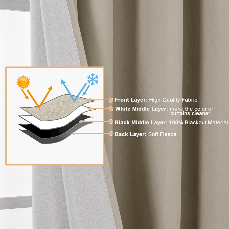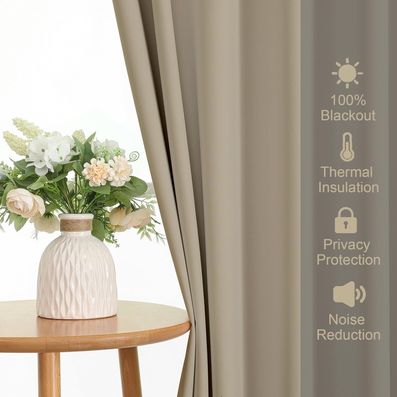 - Nice Material: With white flannel backing, our beige curtains are thick enough to completely block out sunlight, help balance your room temperature by preventing summer heat or winter cold from entering your room. These curtain beige provide you a real dark environment to sleep even during bright sunny day. Protect your indoor privacy.