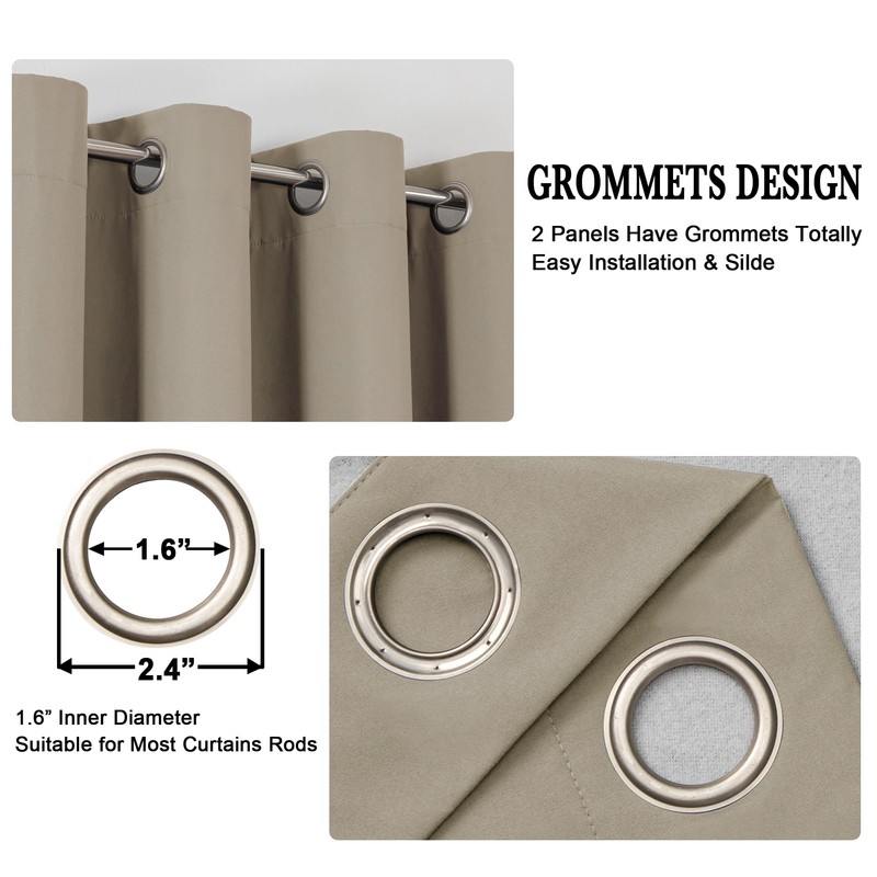 - Package Includes: Sold per pair including 2 panels. Curtains beige measures 38" wide x 45" long | Set measures 76" wide x 45" long. Each panel is constructed with 6 sleek metal grommets (diameter is 1.6"), easy to silde and hung on a basic or decorative curtain rod. Transform your bedroom into a comfortable and peaceful retreat with our window curtains blackout, providing you with optimal comfort and functionality.