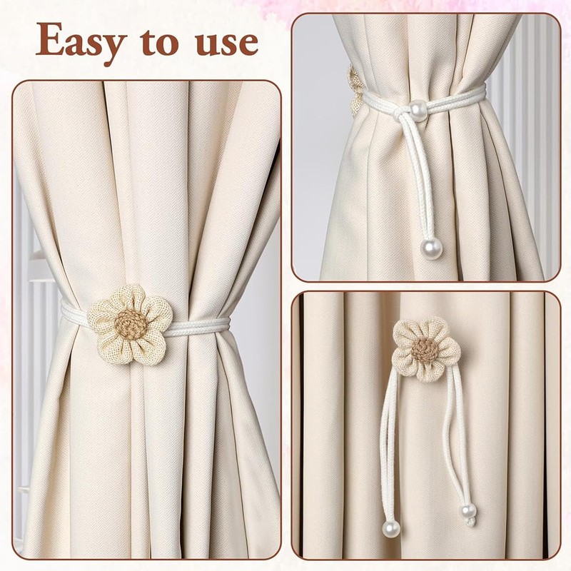 - IMPROVED NEW STYLE: Vintage style hand-woven camellia curtain holders create a unique and beautiful home atmosphere.