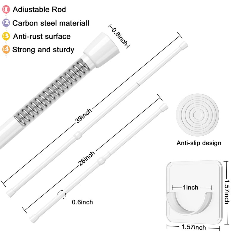 - HIGH-QUALITY MATERIAL:The tension rod itself is made of high-quality inner and outer tube diameter 13/16MM carbon steel, sturdy and durable, and the exterior is made of baking white paint, exquisite and beautiful.