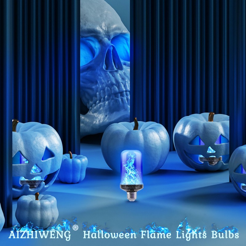 AIZHIWENG 2PCS LED Flame Light Bulbs, E26 Blue Light Bulb with 4 Modes, Flickering Light Bulbs for Indoor and Blue Light Bulbs Outdoor Use