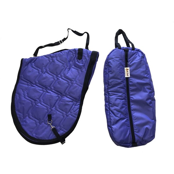 AJ Tack English Padded Saddle and Bridle Carrier Set Purple