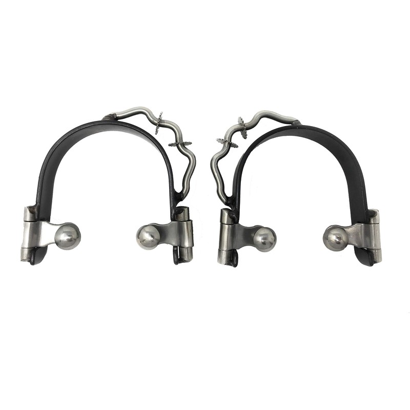 - Pair of black steel bumper spurs with two small rowels for added kick.