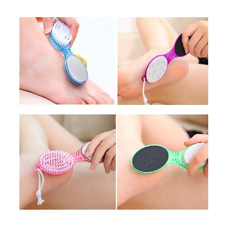 - 4 in 1 Pedicure Tool is made up of high resistant plastic material making it lightweight & durable for longer use. It is washable and therefore reusable. All together it comes with a pumice stone, soft cleansing brush, steel scrubber, and emery foot file providing a large surface area which makes it more convenient and user-friendly.