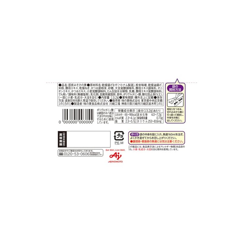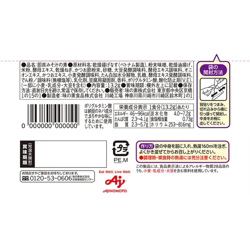 Ajinomoto Miso Soup Eggplant, Reduced Salt 0.5 oz (13.2 g) x 6 Packs