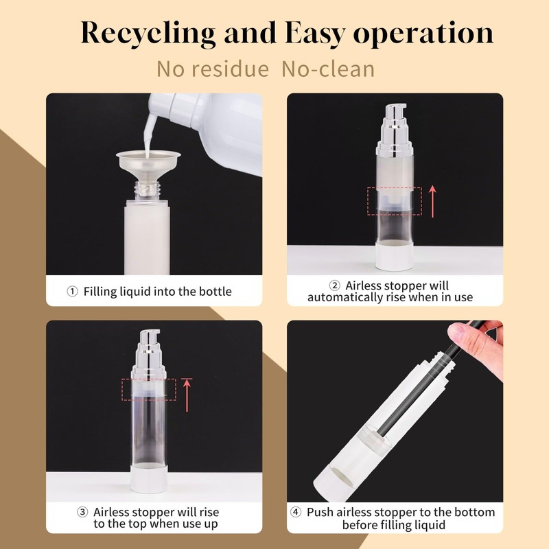 - Well Designed: These airless pump bottles are vacuum designed without the need for a straw, which is more conducive to preventing cosmetics and skincare products from oxidizing and keeping them fresh.