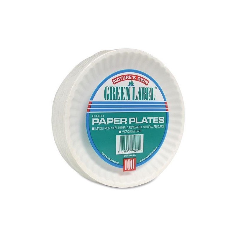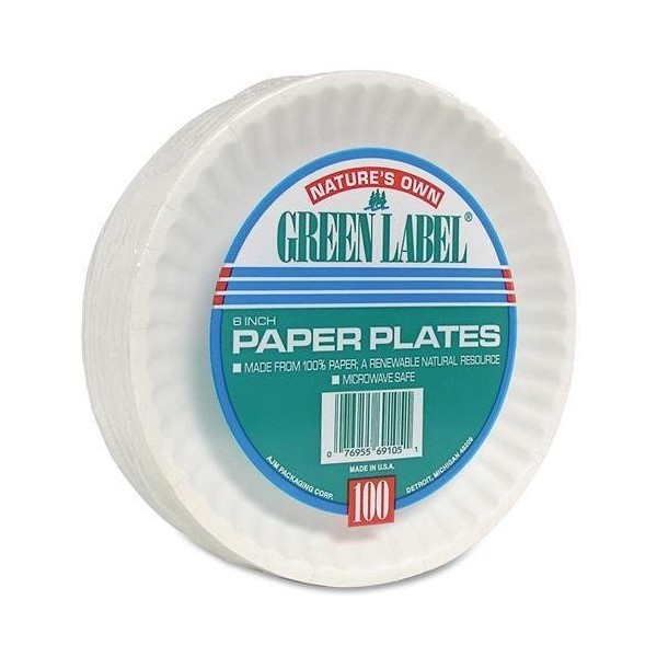 AJM Paper Plates, Recycled, 6" Plate, 1000/CT, White (PP6GRE)