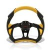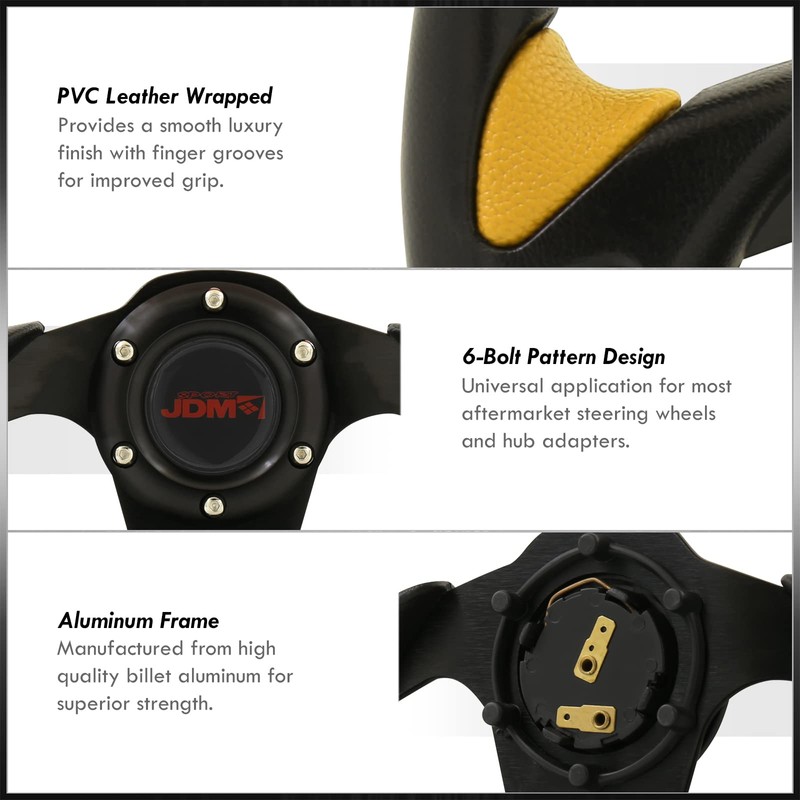 AJP Distributors JDM Sport Universal 320mm 13" 6 Bolt Hole Flat Bottom Steering Wheel D-Shape Black Yellow PVC Leather Light Weight Aluminum 3 Spoke + Horn Button Replacement Track
