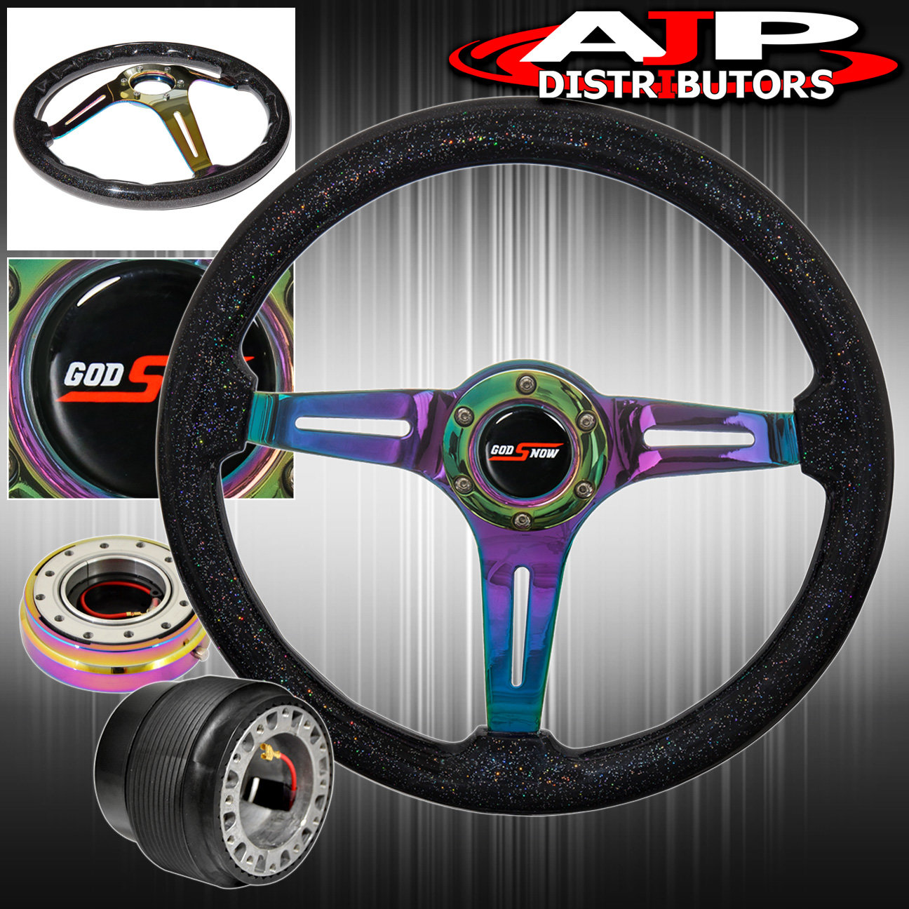 AJP Distributors Quick Release For 89-05 Eclipse + Metallic Gloss Black Neo Chrome Steering Wheel