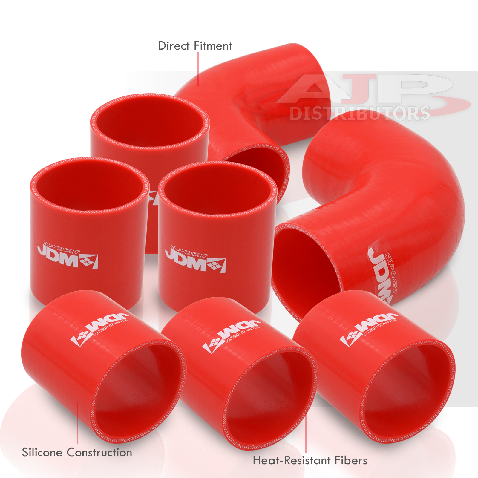 AJP Distributors Universal 3" / 76mm Straight & 90 Degree Elbow Red Silicone Coupler Piping Kit