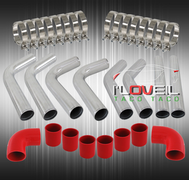 AJP Distributors Universal 3" 8 Pcs 76mm Polished Aluminum Intercooler Pipe Kit Red Couplers