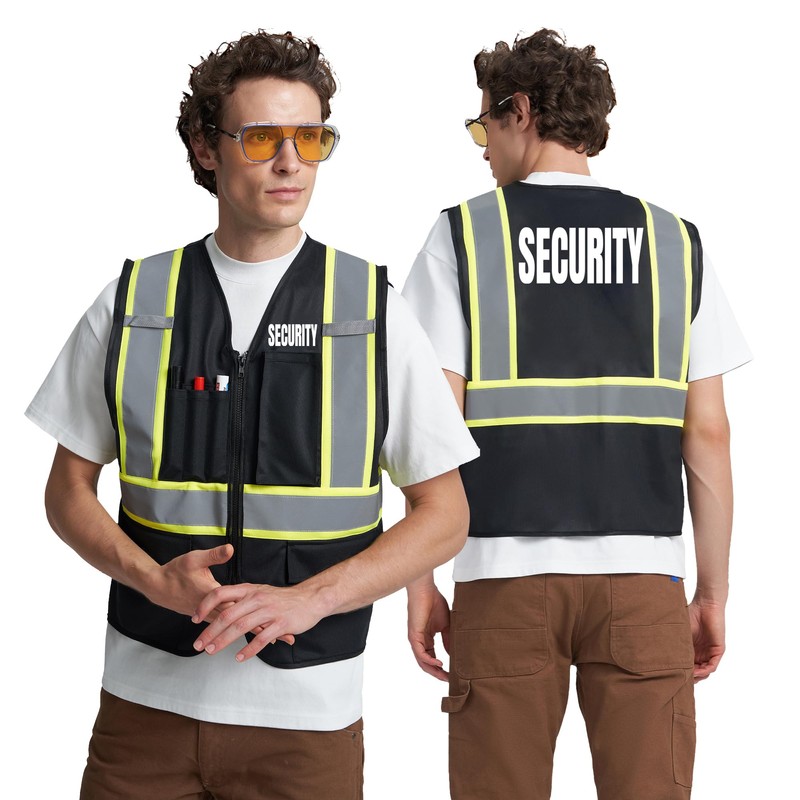 AK A-KSAFETY Black Security Vest - High Visibility & Reflective Safety Vest for Security Guards, Construction & Work - Size L