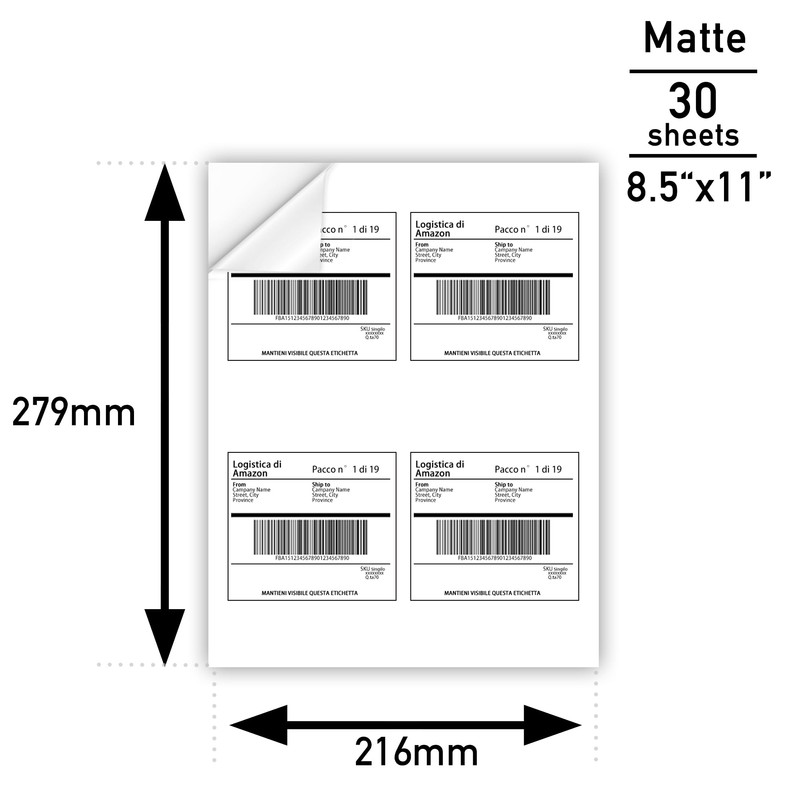 - Sheet Size: 8.5" x 11" ( 216mm x 279mm) , 1 per 1 sheet, 30 Sheets/Pack.