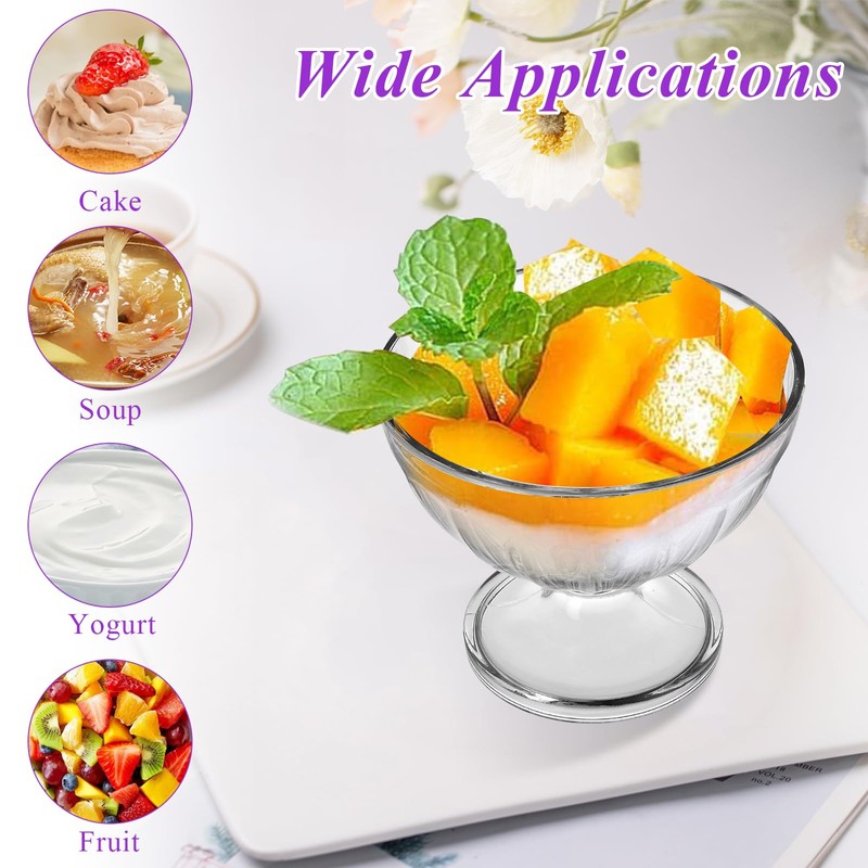 - Value Pack: You will received 12 pack clear dessert bowls, meet you use needs. Each dessert bowl measures 3.93×3.34in/10×8.5cm, 250ml/8oz capacity, perfect size for individual servings of various treats.