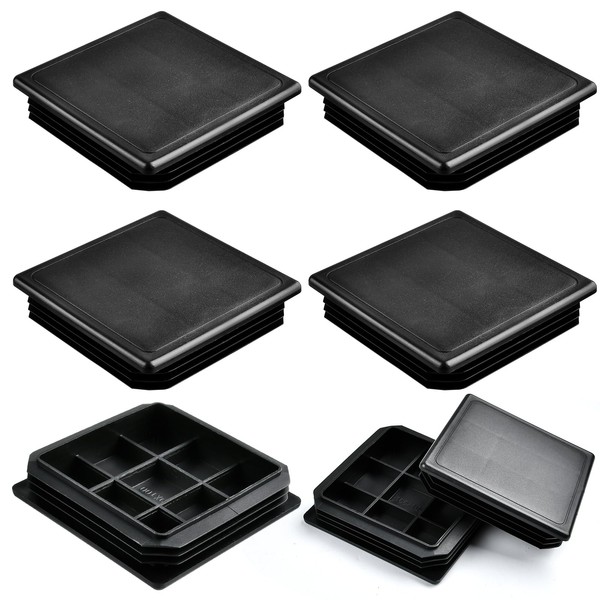 Akamino 20 PCS Square Plastic Plugs 100 x 100 mm, Black Tube Inner End Caps,Anti-Slip Plastic Insert Plugs Pipe for Tables Chairs Desks Beds Foot
