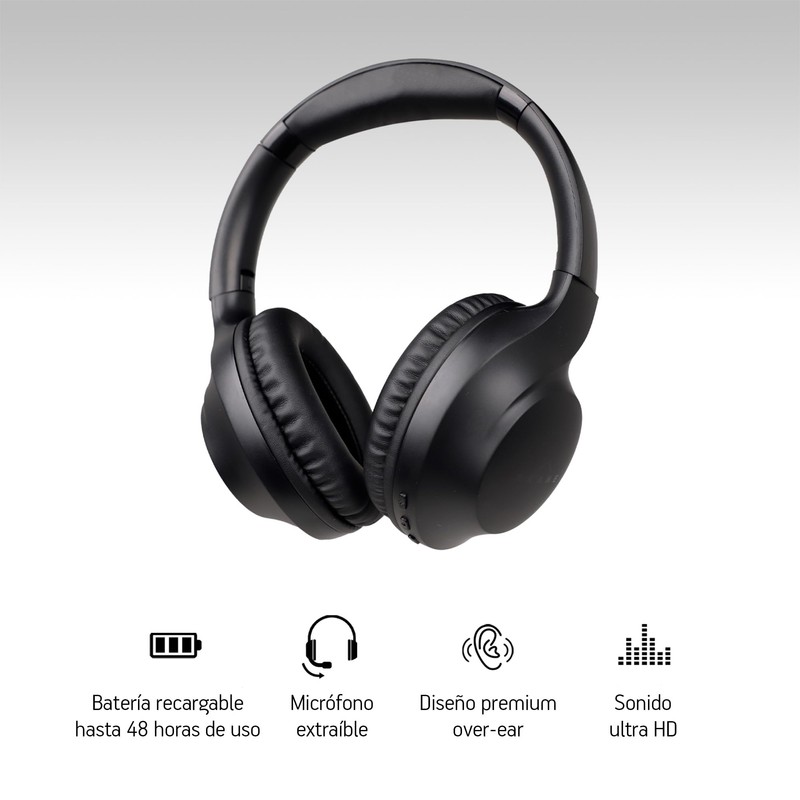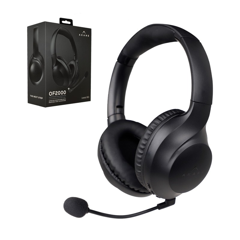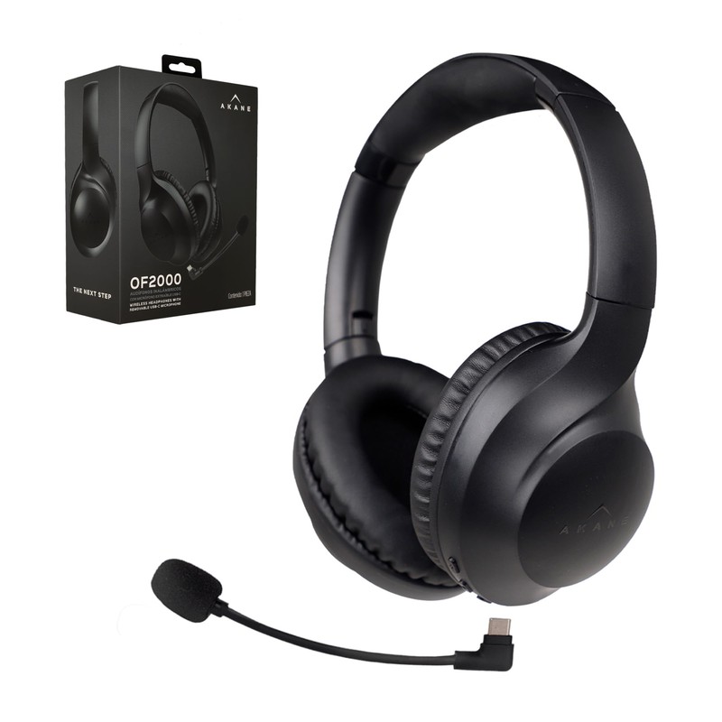 Akane Audífonos Inalámbricos de Diadema Bluetooth Ultra High Definition con Micrófono Extraíble USB-C, Batería de Larga Duración hasta 48 Hrs de Uso, Audífonos Manos Libres Plegables, Mod. OF-2000