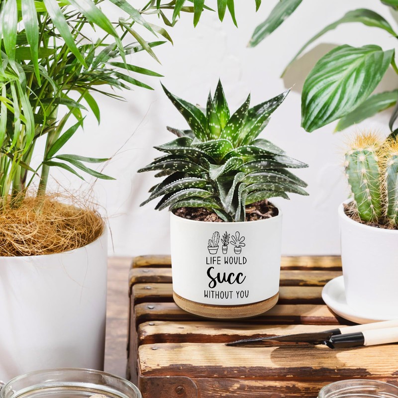 AKAQCHANG Life Would SUCC Without You,Succulent Cactus Cute Planter Pots with Drainage,Office Kitchen Home Windowsill Indoor Verandahs Decor,Gifts for Friends Mom Coworkers Teachers Plant Lovers