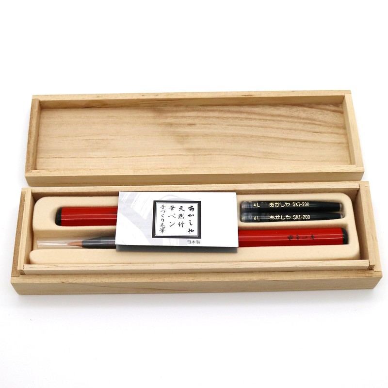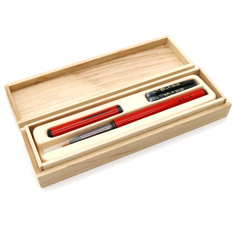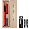 Akashiya AK2500UK-RD Brush Pen, Natural Bamboo Brush Pen, Lacquered Style, Paulownia Box, Red Axis AK2500UK-RD + Cartridge Type Spare Ink SKI-200 (Set of 3)