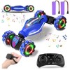 【Akeleo】Spider Remote Control Car for Boys and Girls,360° Rotating RC Car Toy with Cool Spray Pattern,Cool Light Rechargeable 4WD Stunt Vehicle:_Stunt Car (Blue)