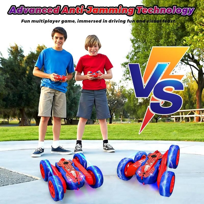 【Akeleo】Spider Remote Control Car for Boys and Girls,360° Rotating RC Car Toy with Cool Spray Pattern,Cool Light Rechargeable 4WD Stunt Vehicle:_Twist Car