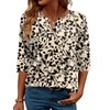 AKEWEI 3/4 Length Sleeve Womens Tops Blouse V Neck T Shirts for Women Plus Size Tunic Casual Summer 2025 Apricot Black Floral XXL