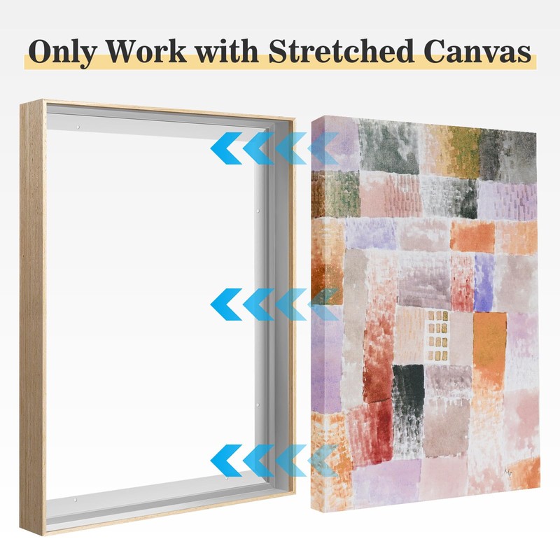 • HOW TO CHOOSE A PROPER CANVAS FRAME - The listed floater frame size is based on inner dimensions. For example, if your stretched canvas painting is 20x30, then please order the 20x30 frame. The rabbet depth of the painting frame is 1.5 inches. We recommend to use the art frame for 1.2-1.5in canvas prints. Moreover, there is 0.2” gap on each side to create floating effect, beautifully decorating protecting your beloved artwork.