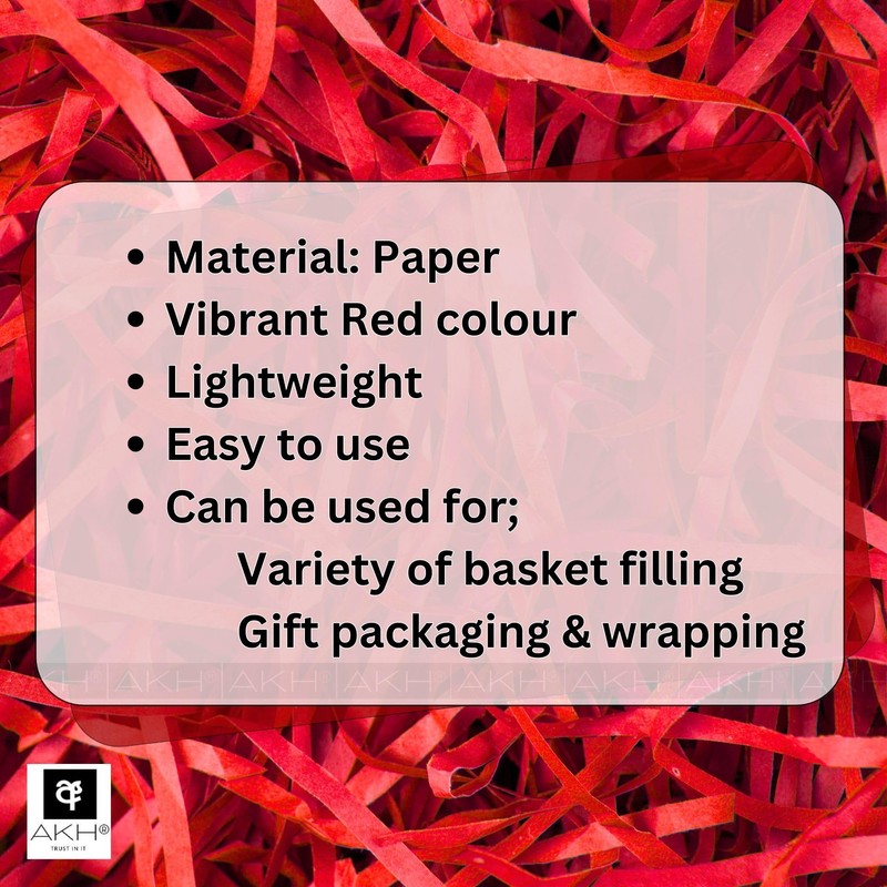 AKH® Red Shredded Tissue Paper | 50g Pack for Gift Wrapping and Decorations | Red gift basket filler decorative paper shred crinkle cut paper hamper shred craft paper shred gift wrapping shred