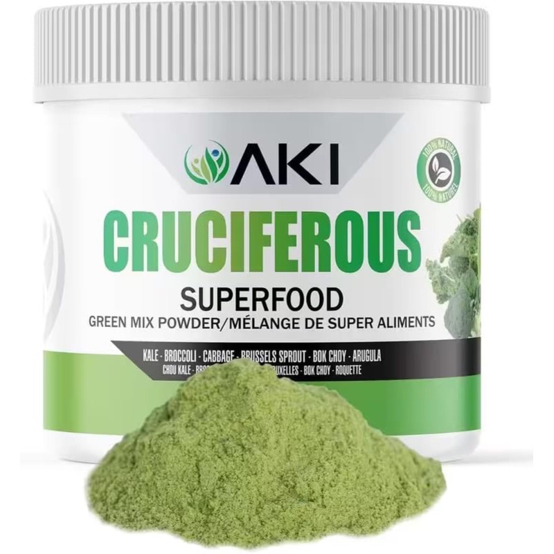 AKI Cruciferous Superfood Green Mix Powder - Made from Kale, Broccoli, Brussels Sprouts, Cabbage - Packed with Essential Phytonutrients & Vitamins ((5.3oz/150g))
