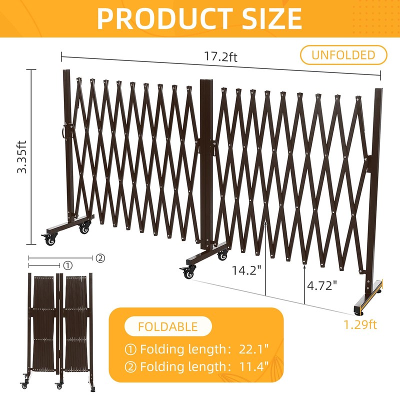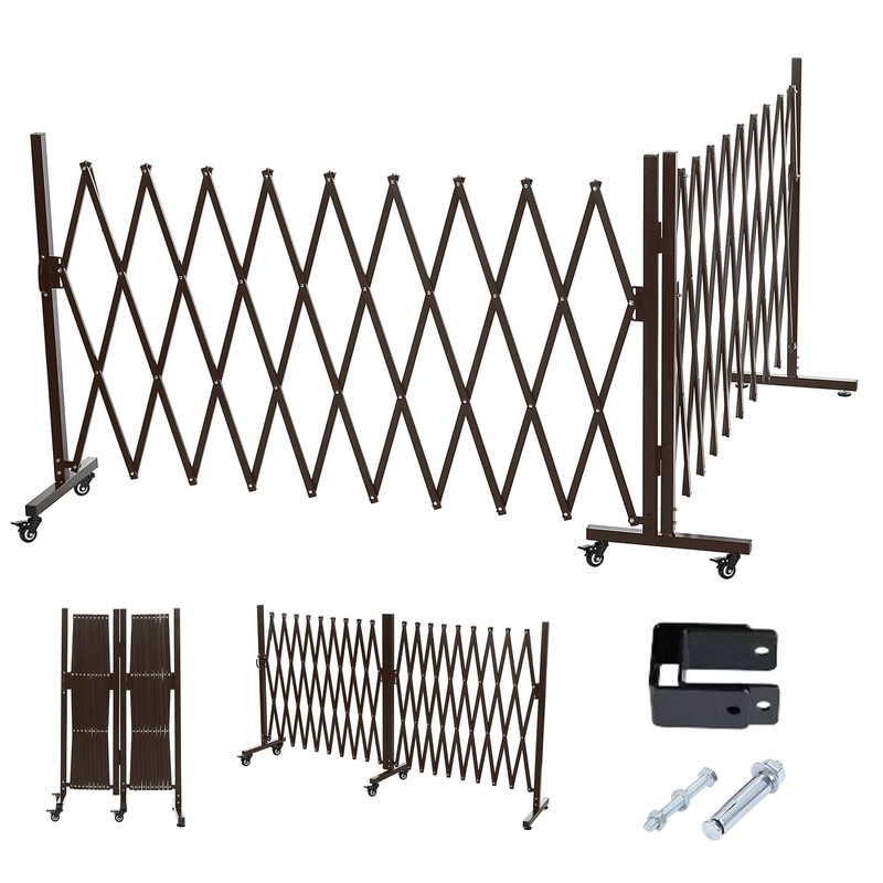 AkiiGer Metal Expandable Barrier Fence for Dogs, Portable Barricade Gate with Casters, Foldable Pet Gate Indoor Outdoor for Rooms, Stairs, Driveway, Garage, Yard, Doorways, 17 Feet, Brown