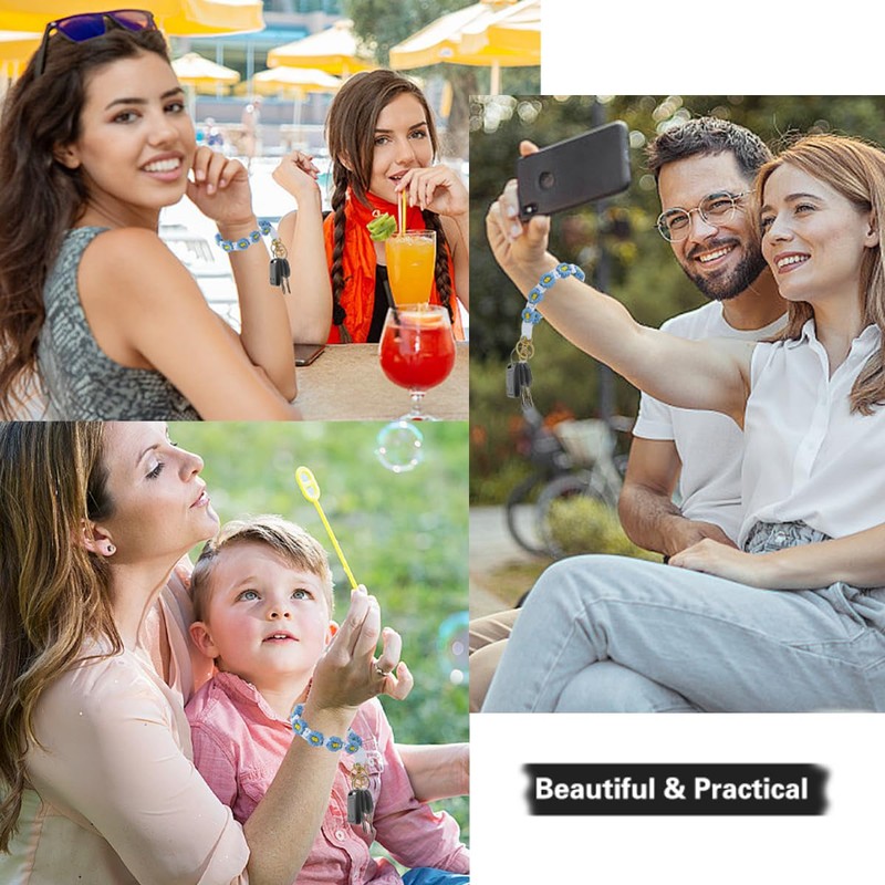 - innovative designs:cute wristlet keychains which combines practicality with aesthetics. Keychain functionality as a bracelet. Keychains features a large detachable spring clasp and a rotating lobster clasp that can hold multiple keychain accessories. Bracelet the keys chains is easy to clean, made with elastic cords for added durability, enhancing its longevity and appeal.