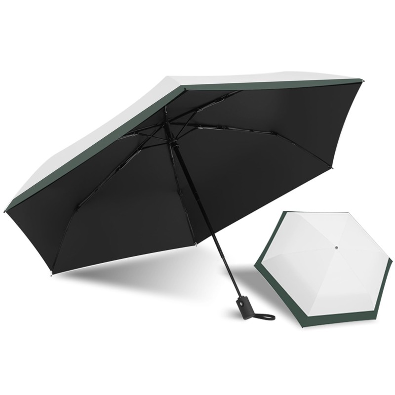• (Ultra Lightweight and Portable) The flat folding sun umbrella design makes it easy to put in your bag. The folded thickness is only 1.4 inches (3.5 cm), the length is 10.2 inches (26 cm), and the weight is about 7.5 oz (21Ultra compact body that is convenient to carry. It can be used in all weather conditions, rainy day, snowy or sunny weather. One-touch automatic open and close folding umbrella for men and women. Can be used for commuting to school, work, excursions, travel, business trips, etc