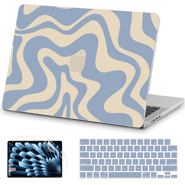 AKIT Compatible with MacBook Pro 16 inch Case 2025 2024-2021 M4 M3 M2 M1 Pro Max A3403 A3186 A2991 A2780 A2485, Unique Pattern Hard Shell Laptop Case+Screen Protector+Keyboard Cover, Blue Wave