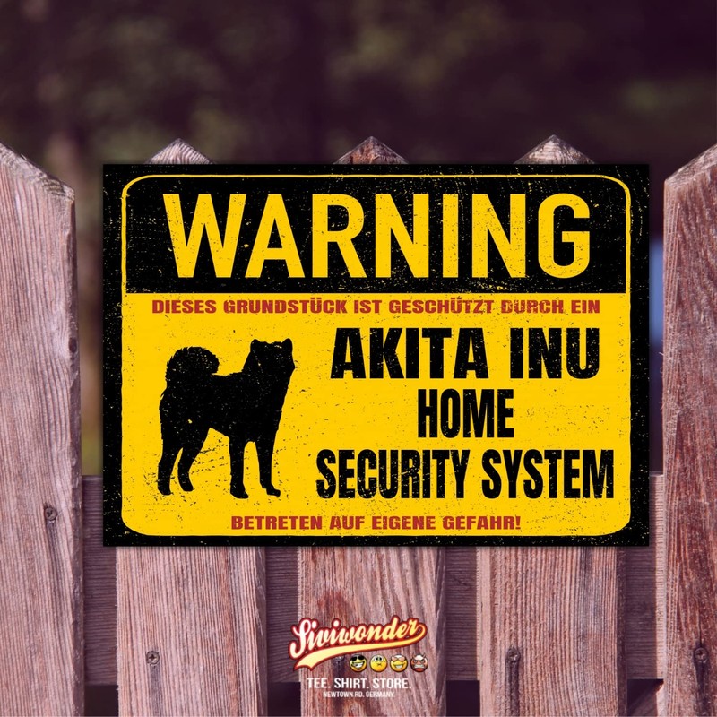 - Great attention door sign dog motif: this property is protected by an Akita Inu - Home Security System! The dog sign for your door or garden fence. Weatherproof and UV-resistant printed with great dog motif in the latest UV printing process. Siviwonder