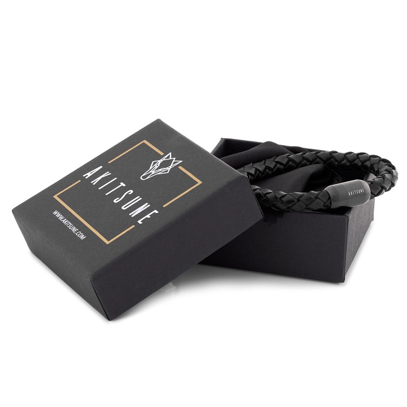 - Handmade: high-quality Akitsune sailing rope bracelet with magnetic stainless steel clasp – matt. The black leather strap has a diameter of 8 mm and is made by hand.