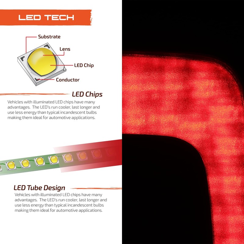 AKKON -Fits 2017-2023 Honda Ridgeline [Halogen Type] Chrome Red Brake Tail Light Passenger Right Side w/LED DRL Running