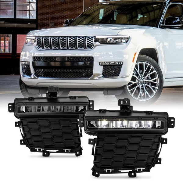 AKKON - Fits 2022-2024 Jeep Grand Cherokee [Three-Row Model] LED Fog Lights Pair Left+Right w/Wire Harness Power Switch