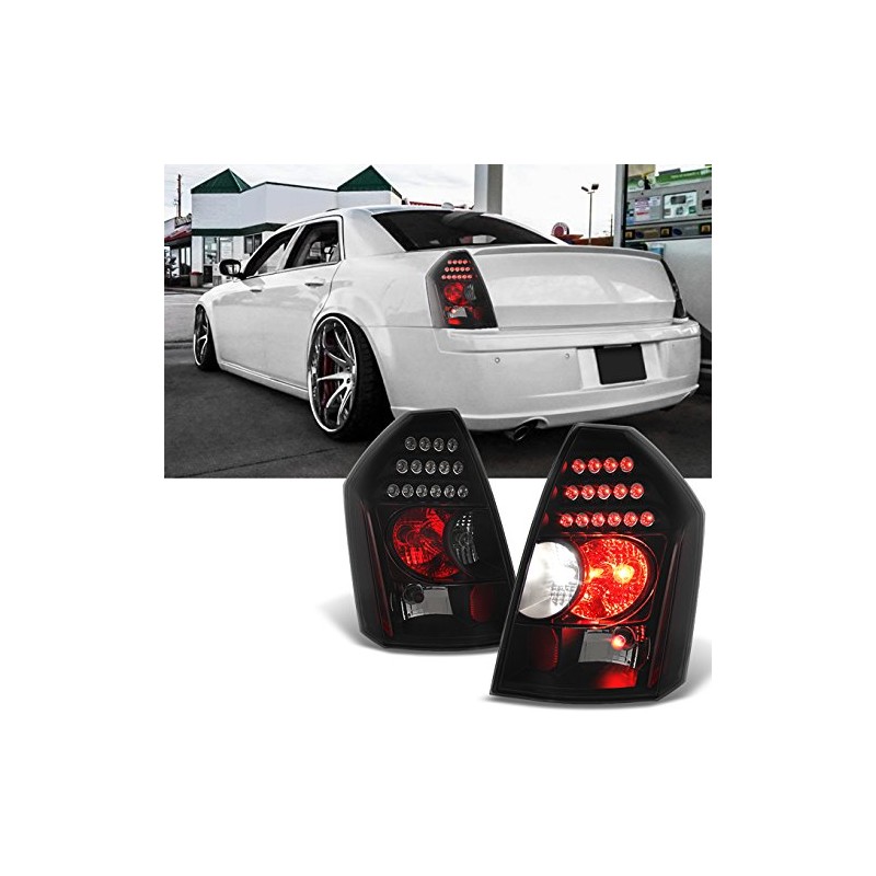AKKON - For 2005 2006 2007 Chrysler 300 Black Smoke LED Tail Lights Brake Lamps Replacement Pair