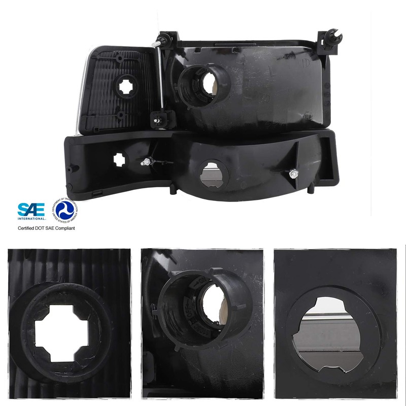 AKKON - For 92-96 Ford Bronco F150 F250 F350 OE Style Black Housing Headlights + Corner Signal Lights