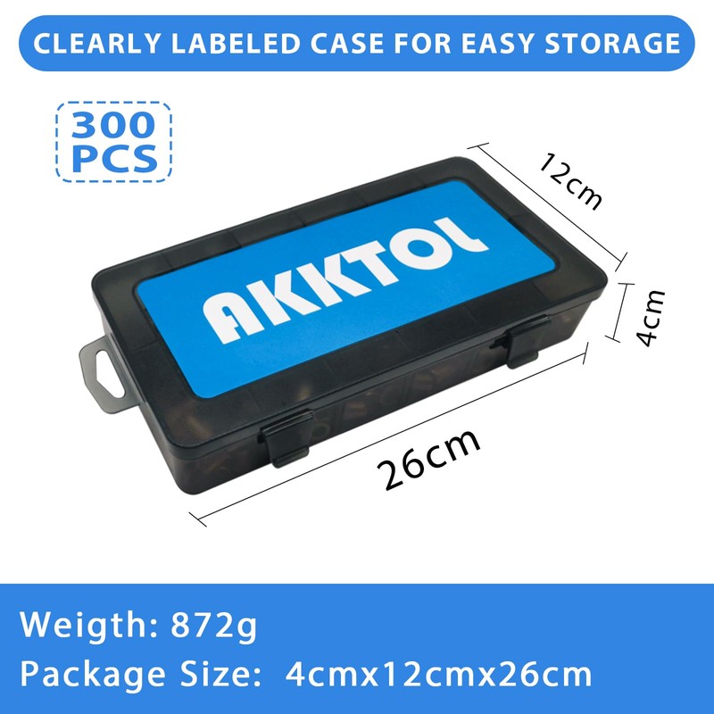 • What you get: the AKKTOL rivet nuts assortment kit comes with 300 pieces rivet nuts in a sturdy transparent box. M3 x 70 pieces, M4 x 25 pieces, M5 x 65 pieces, M6 x 60 pieces, M8 x 20 pieces, M10 x 10 pieces, M12 x 5 pieces.