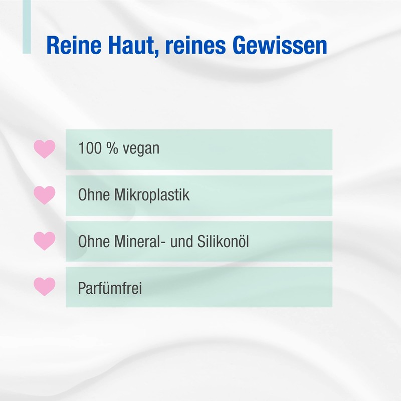 Die aknederm pure-Linie zeichnet sich durch ihre sanften & gut verträglichen Inhaltsstoffe aus. Wir verzichten auf Parfüm, Mikroplastik (auch keine Polymere auf Acrylat-Basis), Mineral- und Silikonöl. Auch PEG, Parabene, Farbstoffe und tierische Inhaltsstoffe sind in unseren Skin Care Produkten nicht enthalten.