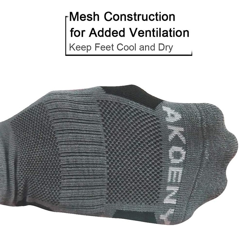- Akoeny athletic socks bring comfort and impact absorption to your workout with enhanced cushioning under the forefoot and heel, and help reduce unpleasant blisters.