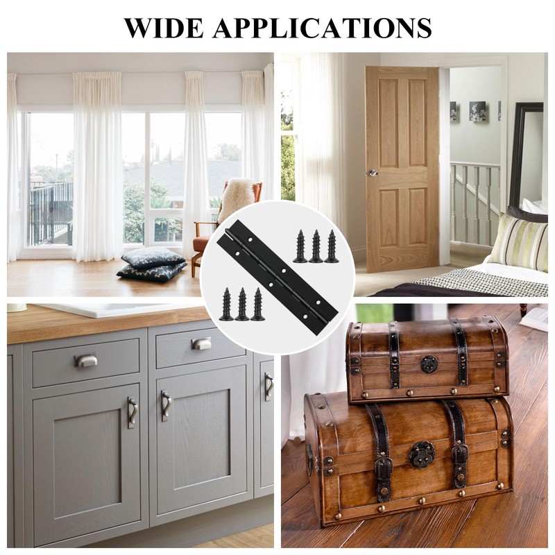- 【Wide Applications】 Universal and cost-effective Door Butt Hinges are suitable for a wide range of applications, including furniture lids, cabinet doors, wardrobe doors, tool boxes, storage boxes and more. Black Piano Hinge are practical accessories for various aspects of your daily life.