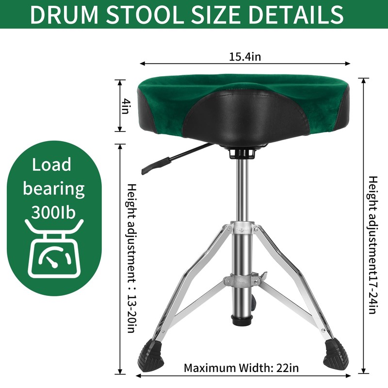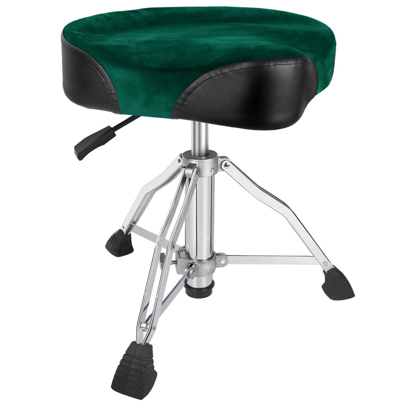 AKOLT Saddle Drum Throne, Heavy Duty Drum Seat, Hydraulic Drum Stool, Height Adjustable Suede Drum Chair, Motorcycle Style, for Adults Drummers Dark Green